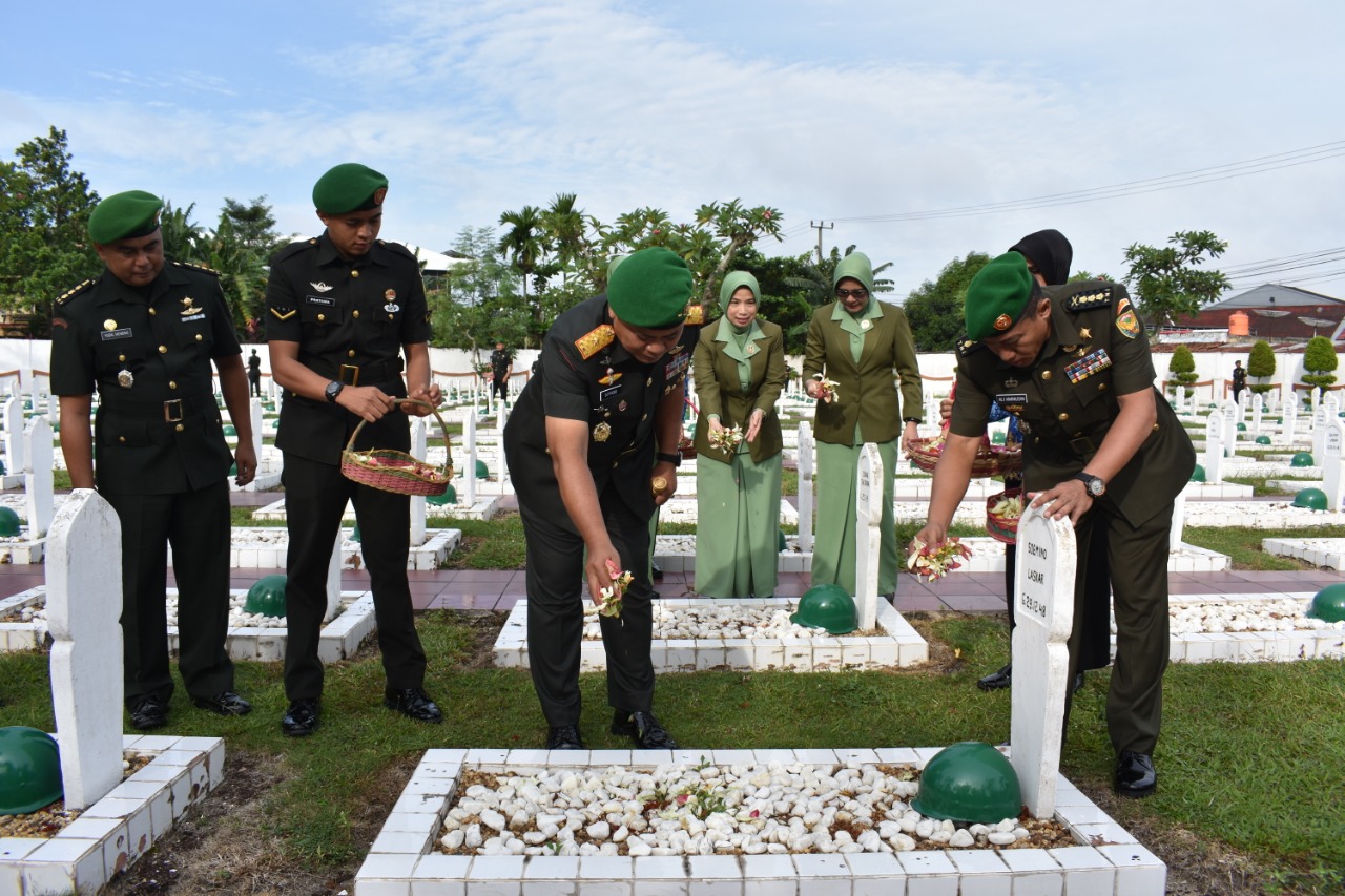 Usai melaksanakan peletakan karangan bunga, dilanjutkan mengheningkan cipta dipimpin Danrem 042/Gapu serta memanjatkan do’a agar arwah para Pahlawan Kusuma Bangsa diberikan tempat yang layak disisi Allah Tuhan Yang Maha Esa, dan diakhiri dengan prosesi tabur bunga dipusaran makam para Pahlawan, ungkap Hatta.