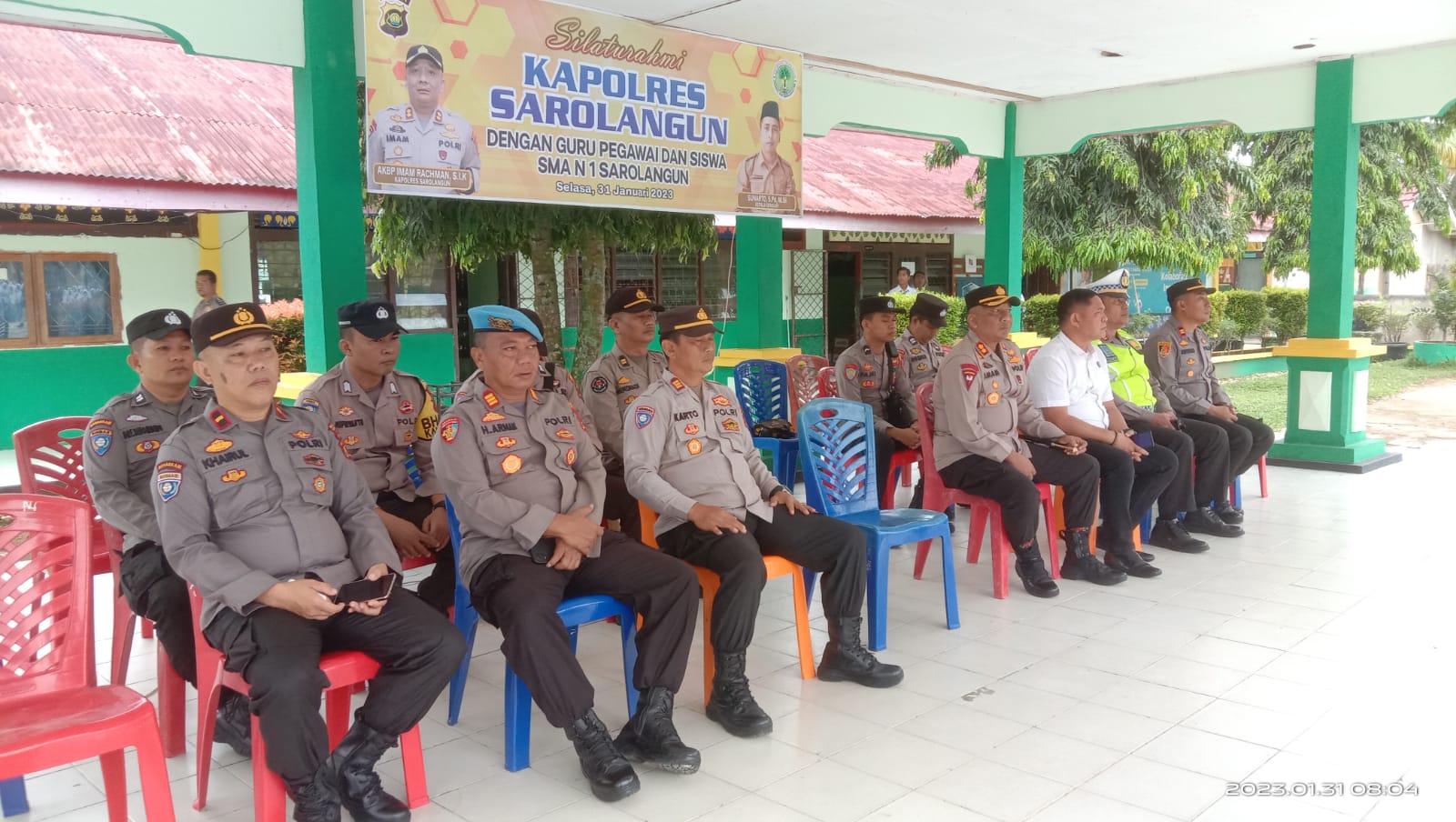 Jurnal1jambi.com – Kapolres Sarolangun kunjungi SMA Negeri 1 Sarolangun, dalam kegiatan tersebut juga mengikut sertakan para PJU Polres Sarolangun, dihadiri oleh seluruh guru dan pelajar SMA Negeri 1 pada Selasa pagi (31/1) di lapangan upacara.
