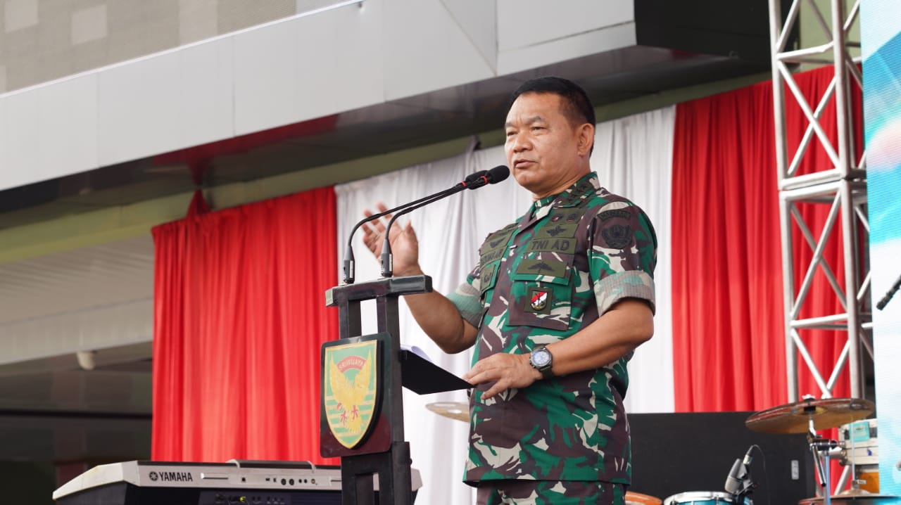 Usai meresmikan nama gedung di jajaran Kodam II/Sriwijaya, Kasad bersama Ketua Umum Persit KCK Ny. Rahma Dudung Abdurachman memberikan bantuan secara simbolis kepada keluarga stunting dan kurang mampu serta anak yatim berupa tali asih dan 100 paket sembako serta menyaksikan berbagai atraksi dan kesenian dari prajurit-prajurit Kodam II/Swj . (Wandy/Dispenad)