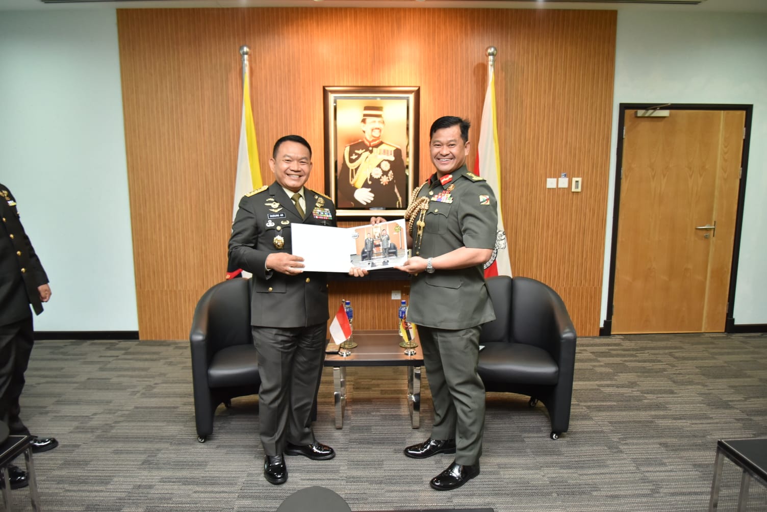 Saat melaksanakan kunjungan kehormatan kepada Panglima Tentera Darat Diraja Brunei, Brigadier General Dato Seri Pahlawan Saifulrizal bin Abdul Latif di Markas TDDB Berakas Garison, Senin (13/3/2023), ke dua belah pihak saling mengapresiasi atas terlaksananya kerja sama antara TNI AD dengan TDDB yang telah terjalin dengan baik di berbagai bidang, baik di bidang latihan, bidang pendidikan maupun bidang intelijen.