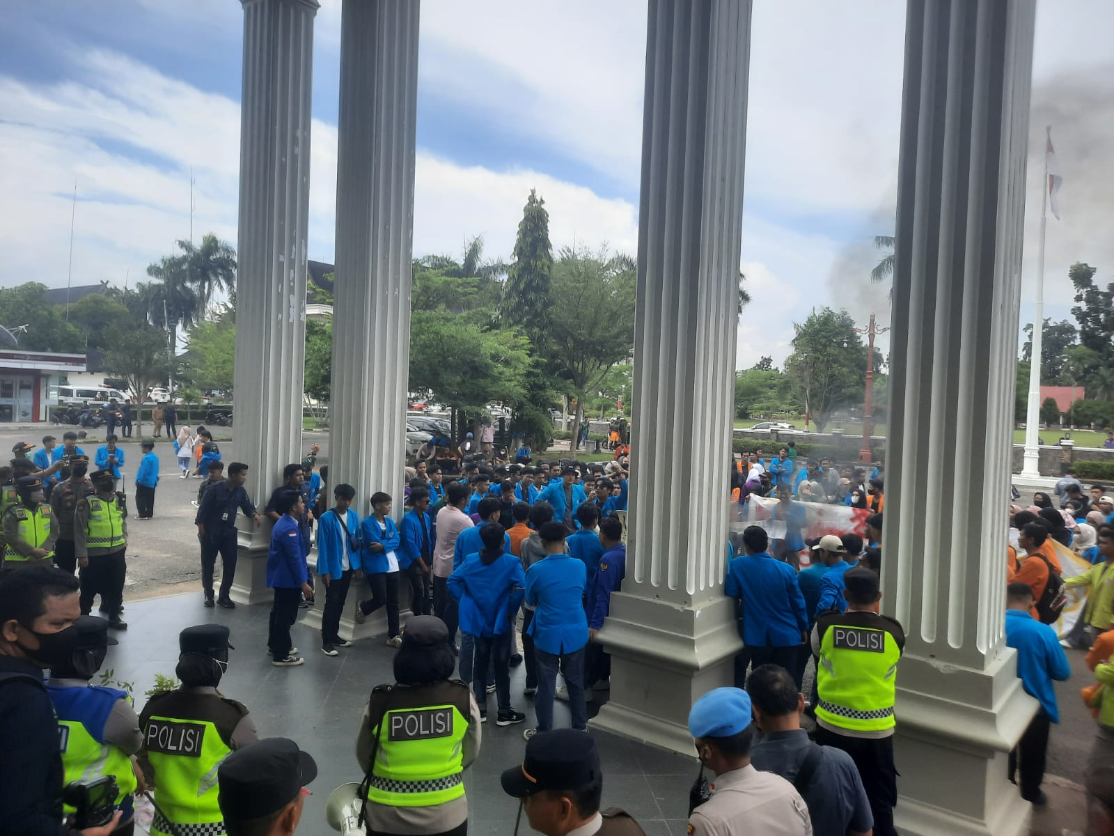 Dalam Orasi nya Mahasiswa menolak keras UU Cipta Kerja dan ingin lansung bertemu Dengan Ketua DPRD Provinsi jambi,Sampai Berita ini diturunkan Ketua Edi Purwanto belum juga menemui Mahasiswa.