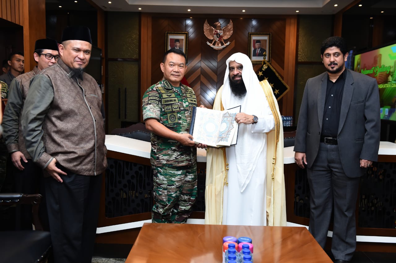 “Tujuan kami datang ke Markas Besar Angkatan Darat untuk menyampaikan hadiah dari Pemerintah Kerajaan Arab Saudi berupa paket buka puasa dan Mushaf Al Qur’an, untuk diberikan kepada para prajurit,” tuturnya.