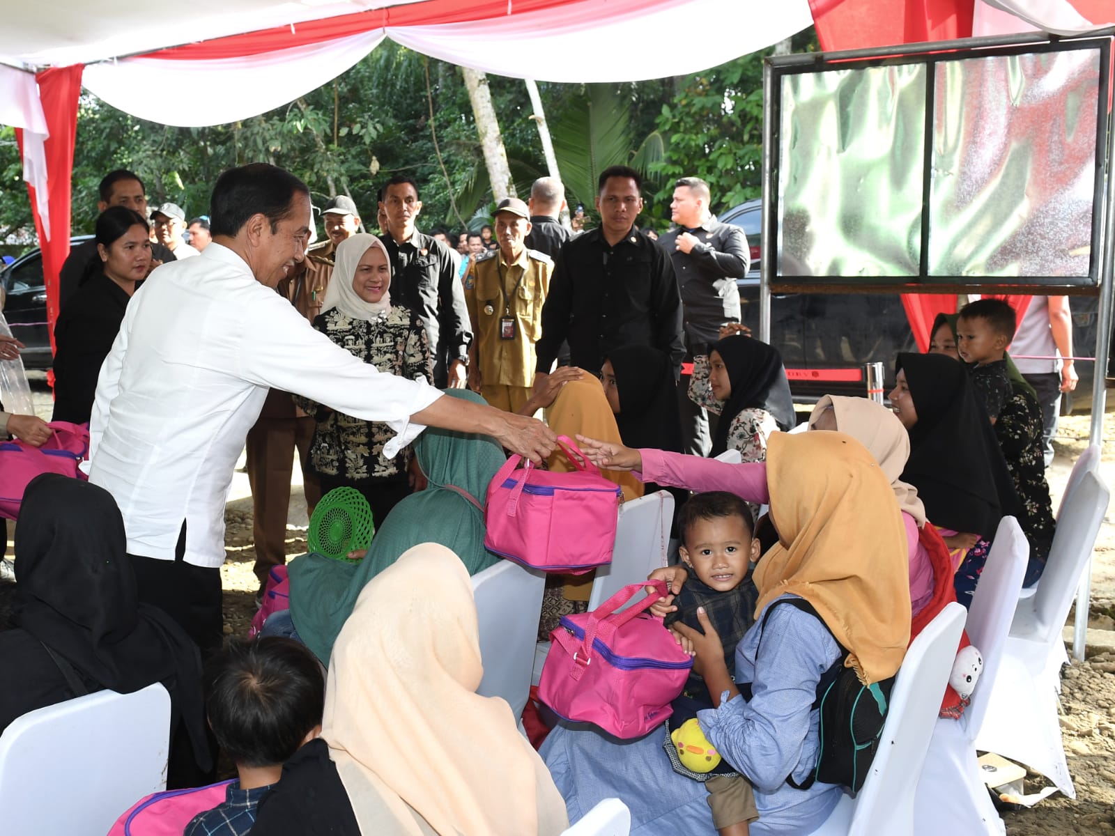 Turut mendampingi Presiden dan Ibu Iriana dalam kegiatan tersebut yakni Menteri Pekerjaan Umum dan Perumahan Rakyat (PUPR) Basuki Hadimuljono, Menteri Sekretaris Negara Pratikno, Gubernur Bengkulu Rohidin Mersyah, dan Bupati Seluma Erwin Octavian.