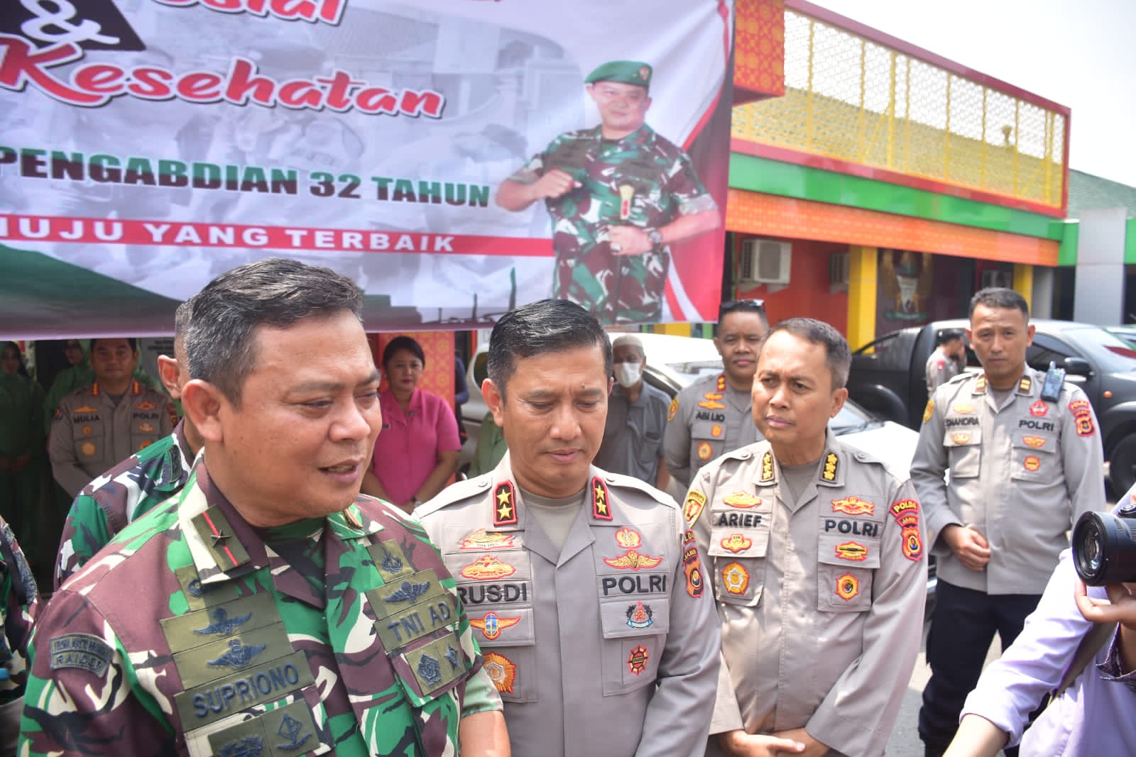 Dalam kesempatan tersebut, Danrem 042/Gapu menyebutkan bahwa bersama Pak Kapolda dan Karo Log Polda Jambi, didampingi Ibu Persit dan Ibu Bhayangkari bersama-sama mengikuti Bakti Kesehatan di RS Bhayangkara dan RS Bratanata dan pemberian bantuan sembako kepada masyarakat.