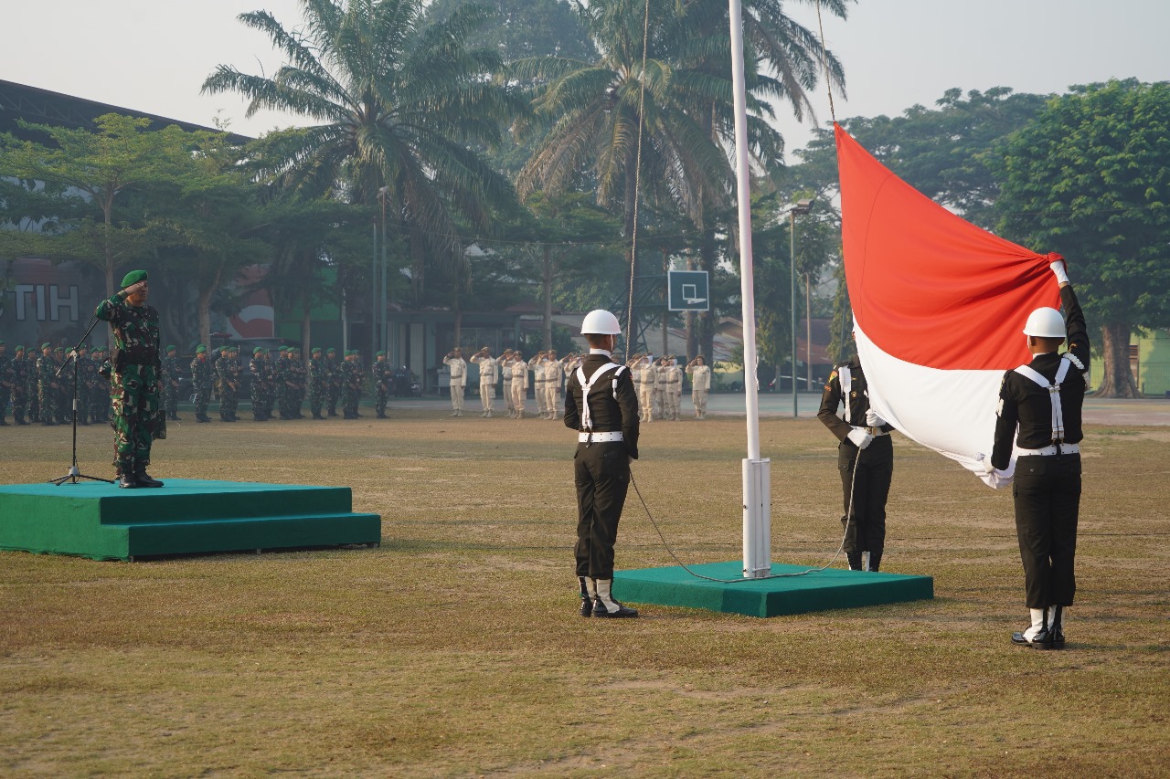 Jurnal1jambi.com, korem042gapu.mil.id – Selaku Inspektur Upacara (Irup), Kepala Staf Korem 042/Gapu Kolonel Inf Ali Aminudin S.E., M.M membacakan Amanat Panglima TNI Laksamana TNI Yudo Margono, S.E., M.M pada Upacara Bendera Tanggal 17 Oktober 2023, bertempat di lapangan Korem 042/Gapu. Jl. Jend Urip Sumohardjo Kel. Sungai Putri Kec. Danau Sipin Kota Jambi. Selasa (17/10/2023).