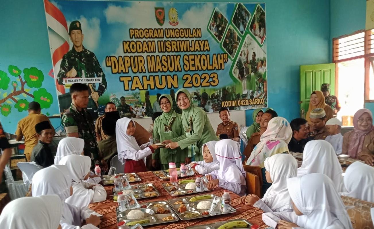 Saat mengikuti vicon dengan Danrem 042/Gapu Brigjen TNI Supriono S.I.P., M.M., Dandim 0420/Sarko Letkol Inf Amaraldo Cornelius menjelaskan, Dapur Masuk Sekolah merupakan program unggulan Kodam II/Sriwijaya dengan sasaran utama anak-anak sekolah dasar yang memiliki tingkat ekonomi kurang mampu di lingkungan tempat tinggalnya. Adanya program ini juga bagian dari Kodam II/Sriwijaya membantu menurunkan angka stunting melalui pemberian makanan bergizi dan bantuan nutrisi kepada anak-anak sekolah dasar. Selain itu melalui program ini bertujuan juga untuk menumbuhkan rasa cinta tanah air, wawasan kebangsaan dan bela negara sejak usia dini.
