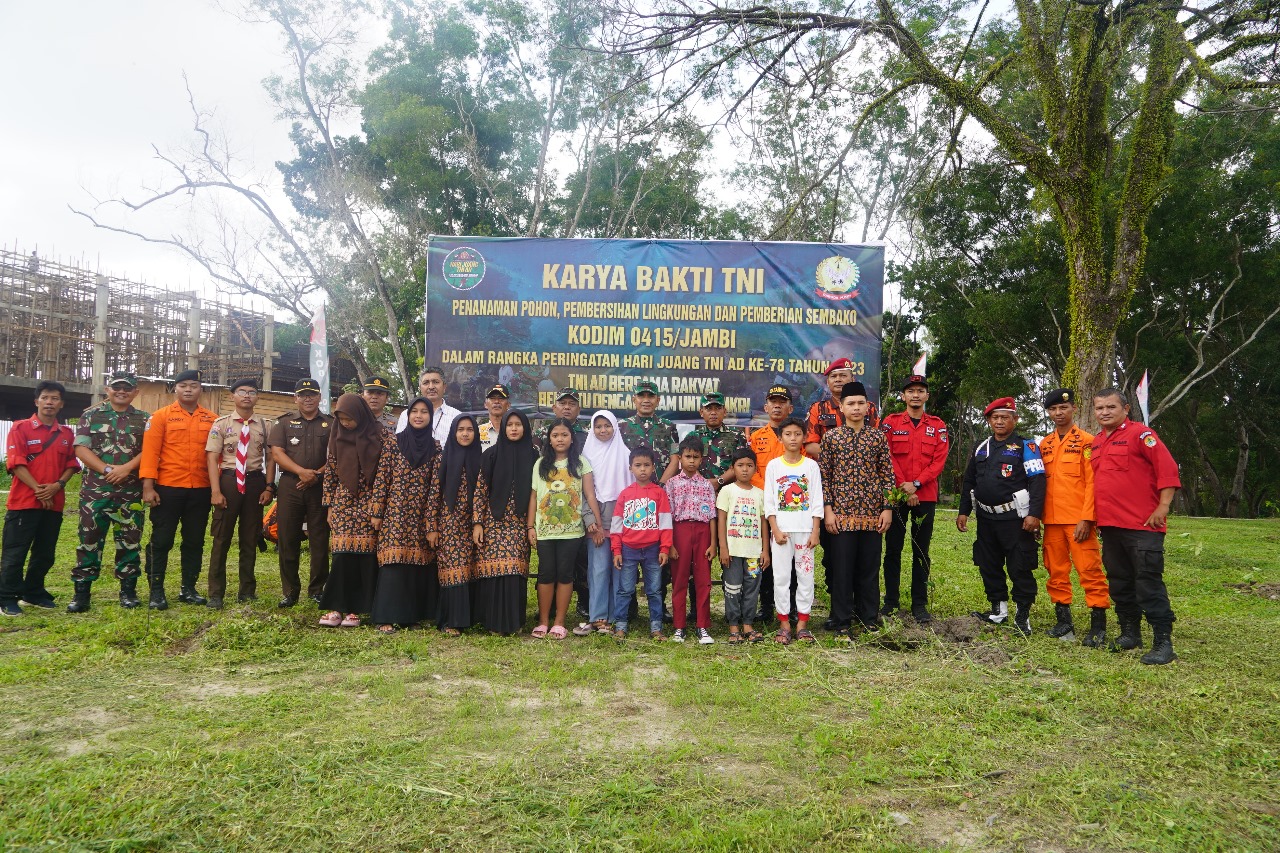 Jurnal1jambi.com,Sesuai tema Hari Juang TNI-AD tahun 2023 yaitu “ TNI-AD BERSAMA RAKYAT BERSATU DENGAN ALAM UNTUK NKRI”. Dengan tema tersebut Danrem 042/Gapu mengimplementasikannya dengan memimpin satuan di jajarannya yakni seluruh Kodim untuk melaksanakan penanaman pohon dengan mengajak seluruh elemen masyarakat diwilayah masing-masing.