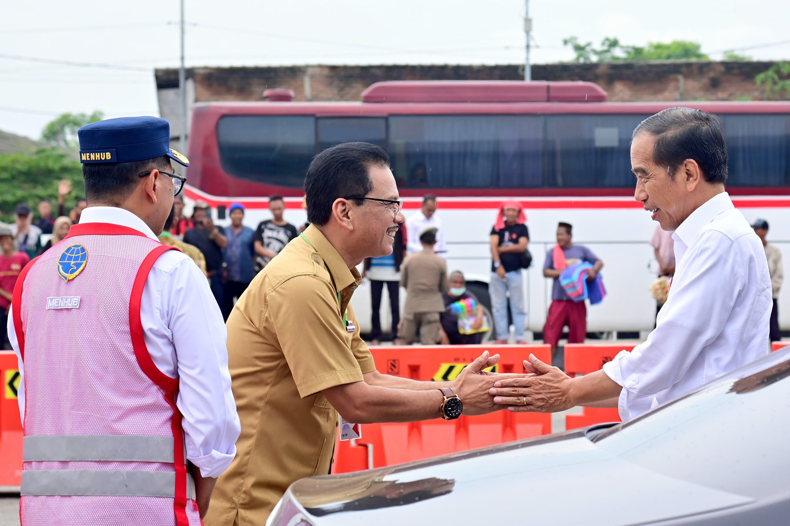 Turut mendampingi Presiden dalam peresmian tersebut antara lain Menteri Perhubungan Budi Karya Sumadi, Menteri Pekerjaan Umum dan Perumahan Rakyat Basuki Hadimuljono, Menteri Perdagangan Zulkifli Hasan, Pj. Gubernur Banten Al Muktabar, dan Pj. Wali Kota Serang Yedi Rahmat.
