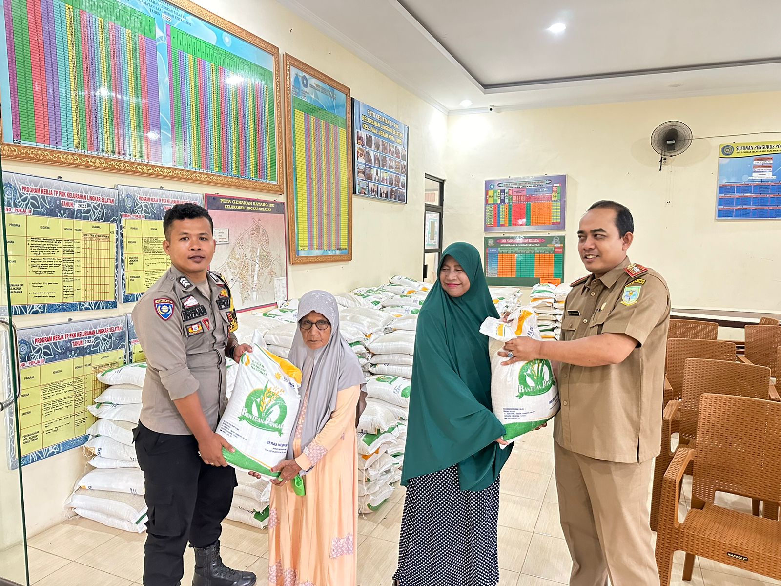 Pendistribusian bantuan beras dipantau langsung oleh; Lurah Lingkar Selatan Bpk Ponimin, Bhabinkamtibmas Kelurahan Lingkar Selatan Brigpol Irfan Nafsi, dan Babinsa Kelurahan Lingkar Selatan Sertu Yuda.
