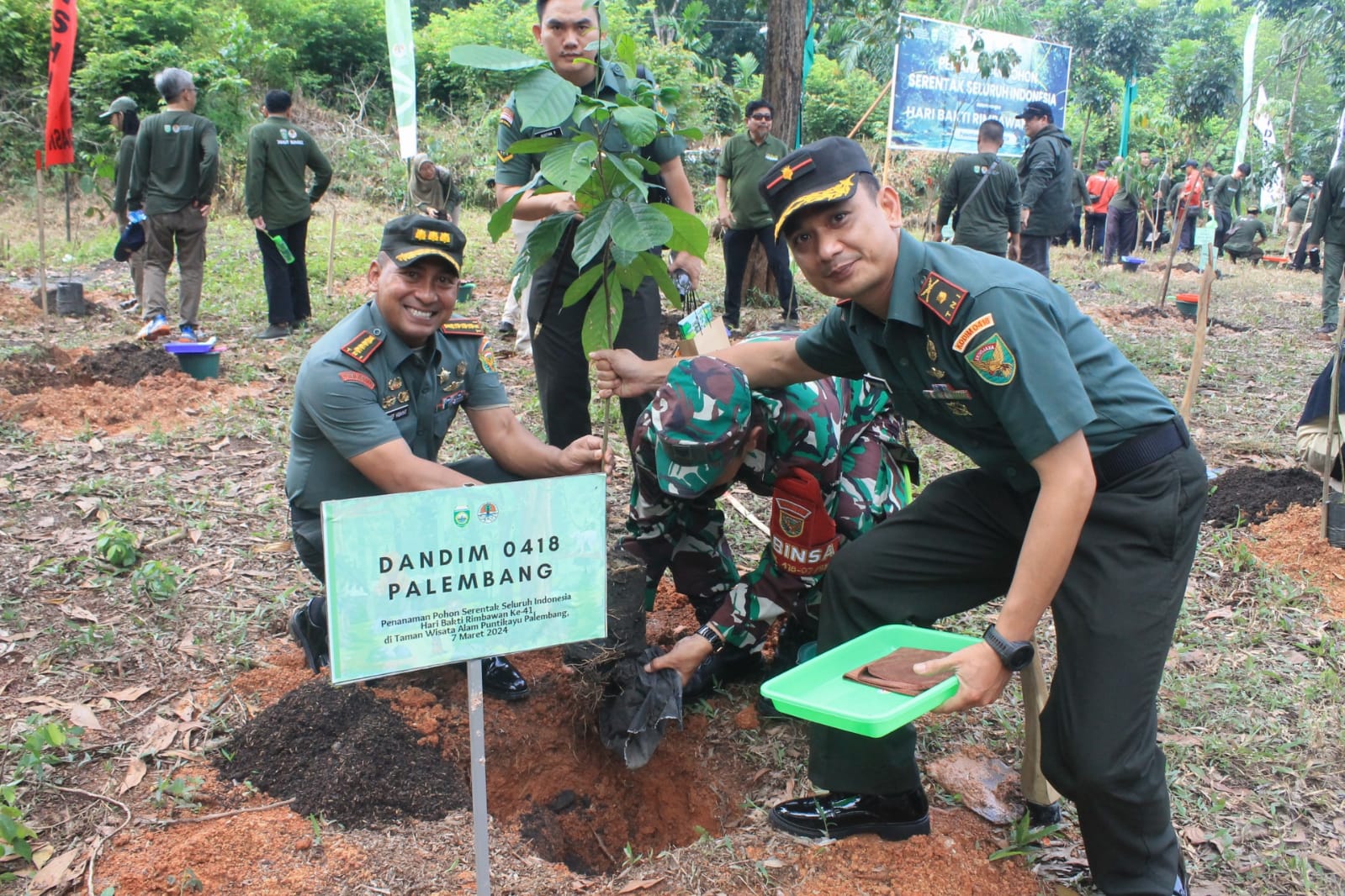 Sementara itu di tempat yang sama Dandim 0418/Palembang mengatakan bahwa dalam rangka Hari Bakti Rimbawan ke – 41 kita menghadiri kegiatan penanaman pohon serentak seluruh Indonesia yang bertujuan untuk meningkatkan pemahaman atas upaya untuk menjaga dan mengelola lingkungan dan hutan.