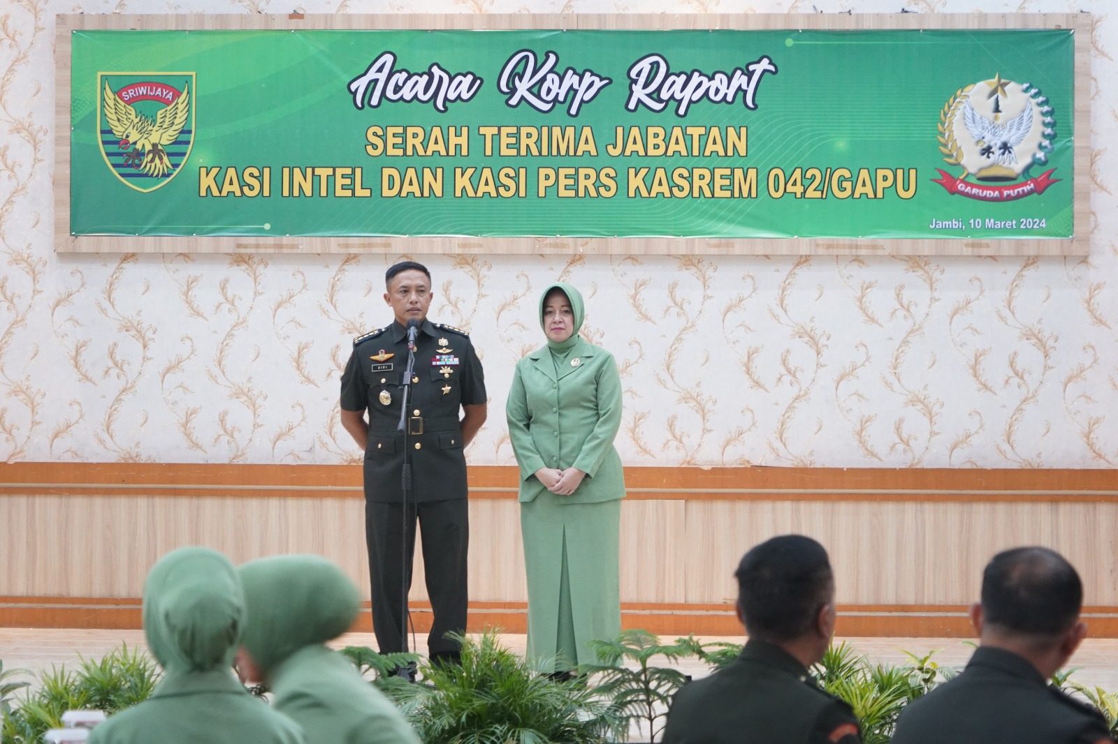 “Dan kepada pejabat baru Kolonel Inf M. Imasfy, S.E. sebagai Kasi Intel Kasrem 042/Gapu dan Kolonel Arh Agus Setiawan, S.T, sebagai Kasi Pers Kasrem 042/Gapu. Saya ucapkan selamat datang dan selamat bertugas di Jajaran Korem 042/Gapu.