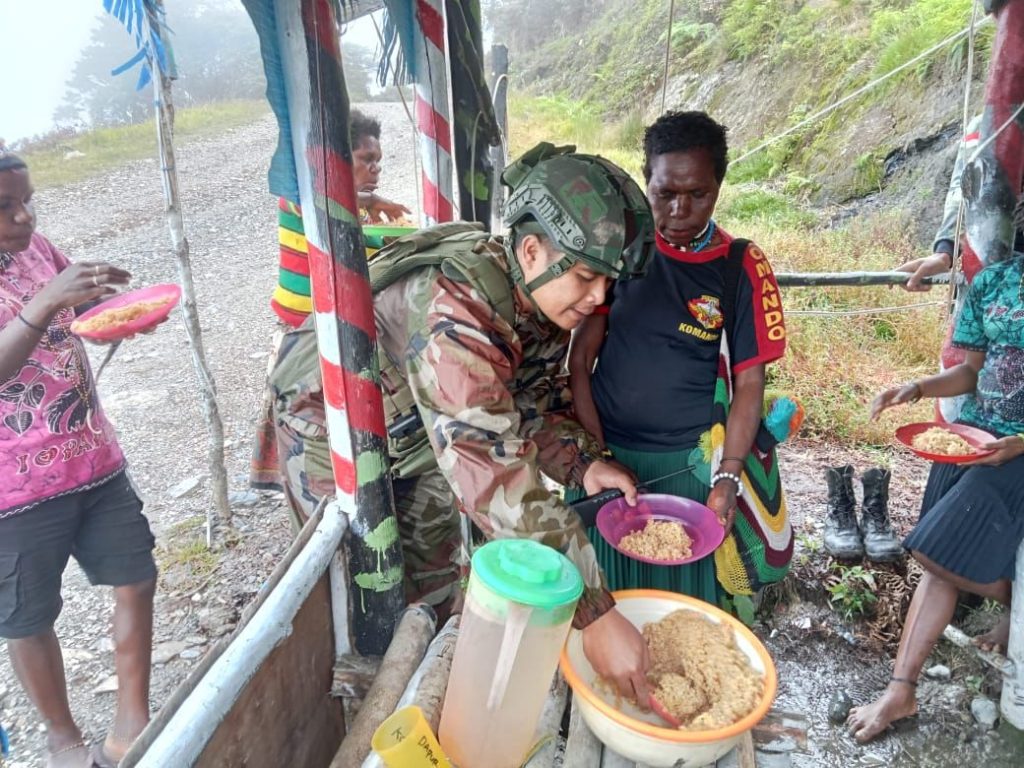 Jurnal1jambi.com,Sebagai bentuk rasa syukur kepada Tuhan Yang Maha Esa, Satgas Yonif 509 Kostrad membagikan sarapan kepada masyarakat melalui Pos Bilogai. Distrik Sugapa, Kab. Intan Jaya. Senin (15/04/2024)