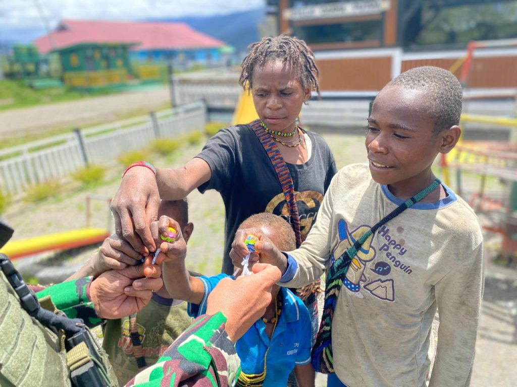 Jurnal1jambi.com,Sebagai wujud kedekatan dan keharmonisan antara TNI dan warga khususnya anak-anak di Kampung Mamba, Prajurit Ksatria Condromowo membagikan permen kepada anak-anak Papua di Pos Mamba, Distrik Sugapa, Kab. Intan Jaya. Selasa (16/04/2024).