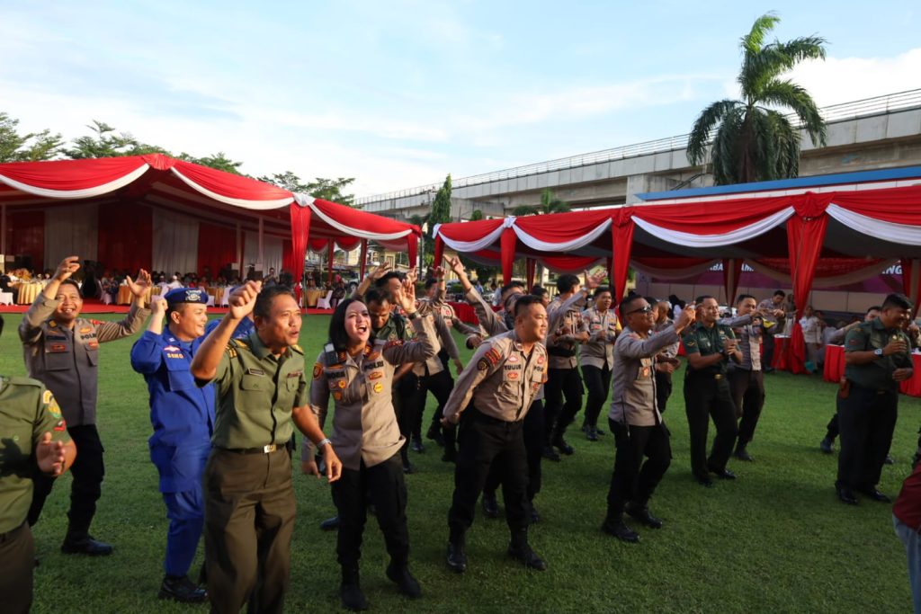 Jurnal1jambi.com,Silaturahmi dan halalbihalal TNI, Polri, Pemerintah Kota (Pemkot) Palembang, dan Tokoh Masyarakat 1445 H berlangsung di halaman Mapolrestabes Palembang, Kamis sore (25/4/2024).