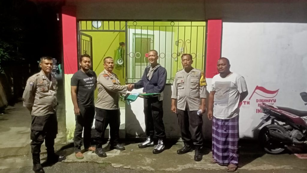 Jurnal1jambi.com- Kanit Binmas Polsek Jamsel Iptu Samsudin Bersama BKTM Kel. Wijaya Pura Bripka Adios hairan dan BKTM Kel Pasir Putih Bripka Rhoma Suryanto Melaksanakan kegiatan Sambang dialogis dan pemberian sarana kontak di RT 04 Kel. Wijayapura dan Warga RT 10 Kel Pasir Putih pada Hari Jumat 24 Mei 2024 Pukul : 22.00 wib s/d Selesai.