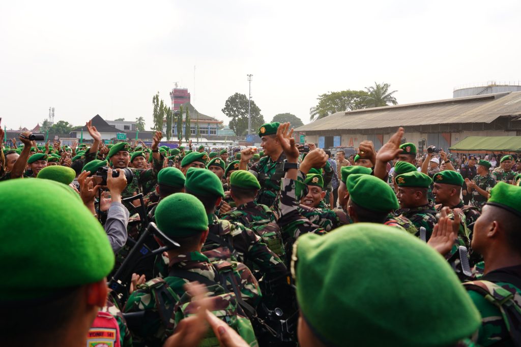Jurnal1jambi.com_Panglima Kodam II/Sriwijaya Mayjen TNI M. Naudi Nurdika memimpin Upacara Pemberangkatan Satuan Tugas (Satgas) Pengamanan Perbatasan (Pamtas) Republik Indonesia (RI) – Papua Nuigini (PNG) Kewilayahan Yonif 141/AYJP, dalam rangka latihan Pratugas dan penugasan ke wilayah Papua, Jum’at (14/06/2024) di Dermaga B Pelabuhan Boom Baru Palembang.