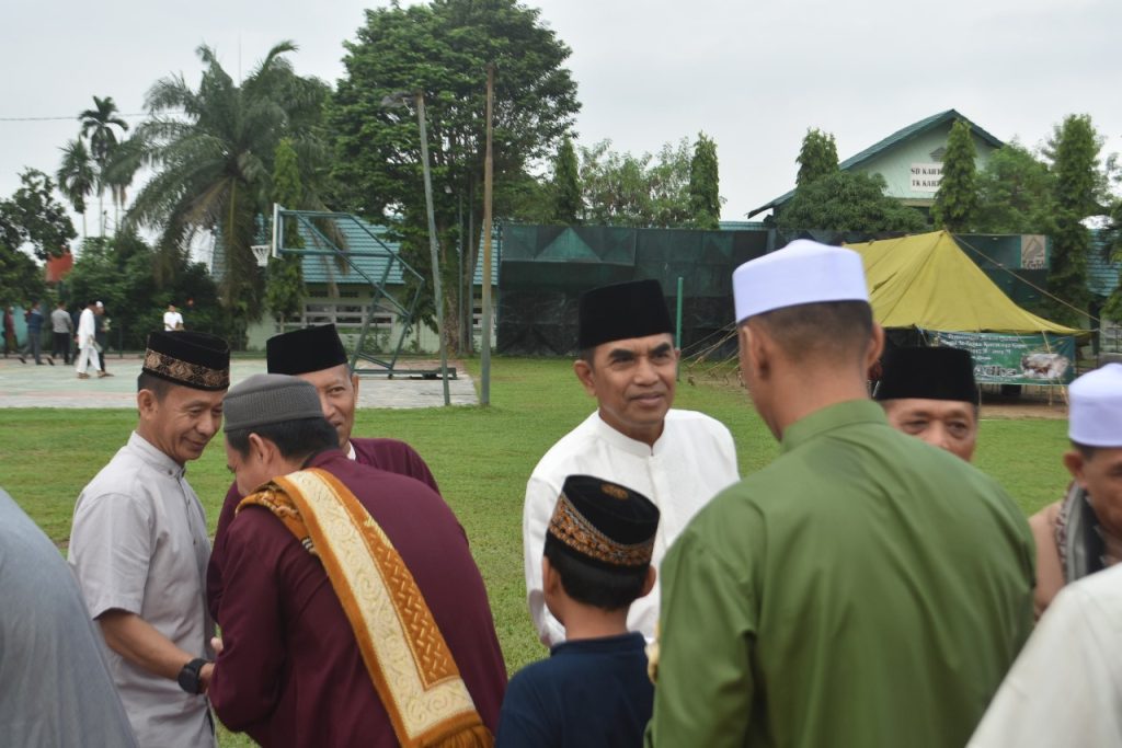 Jurnal1jambi.com – Danrem 042/Gapu Brigjen TNI Rachmad S.I.P dan Ibu Ketua Persit KCK Koorcab Rem 042 PD/Sriwijaya Lenni Rachmad bersama keluarga melaksanakan shalat Idul Adha 1445 H/2024 M di Lapangan Makorem 042/Gapu Sipin Kota Jambi pada Senin, 17 Juni 2024.