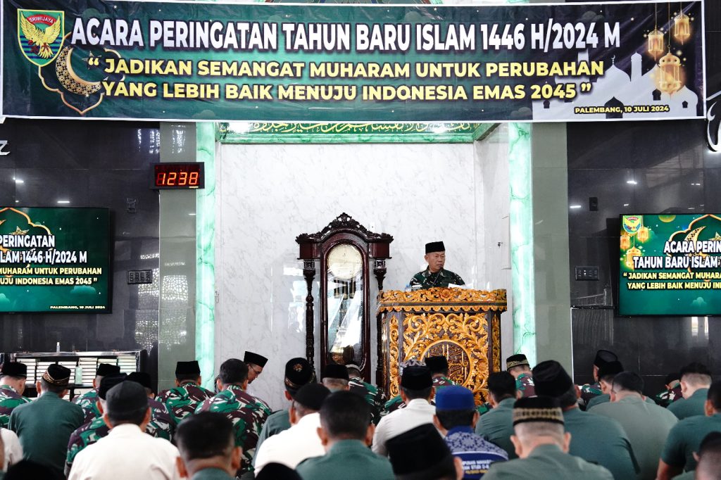 Jurnal1jambi.com,Segenap Prajurit dan PNS jajaran Kodam II/Swj wilayah Garnizun Palembang mengikuti Acara Peringatan menyambut Tahun Baru Islam 1 Muharram 1446 H/2024 M, pada Rabu (10/07/2024), bertempat di Masjid Raudhatul Ulum Makodam II/Swj Palembang.