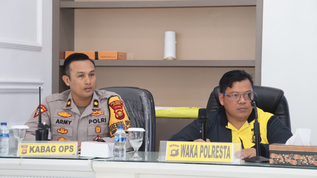 Jurnal1jambi.com _ Wakapolresta Jambi Akbp Ruliandi Yunianto, Pimpin Rapat Rencana Pengamanan kegiatan Flame Fest dengan Penampilan Artis Nasional “Tipe-X, NDX Aka, Kahitna dan Feast” yang akan dilaksanakan di Lapangan Dwaya Hamsah (Depan Bandara Lama), Jum’at 26 Juli 2024.