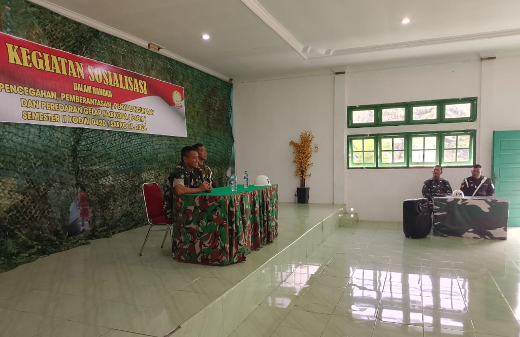 Jurnal1jambi.com – Dalam rangka menindaklanjuti dampak bahaya narkoba khususnya di lingkungan TNI AD, Kodim 0420/Sarko sosialisasi terkait Pencegahan, Pemberantasan, Penyalahgunaan dan Peredaran Gelap Narkoba (P4GN) bekerjasama dengan Polisi Militer dan DKT Bangko yang dilaksanakan di Aula Makodim Sarko, Senin (29/7/2024).