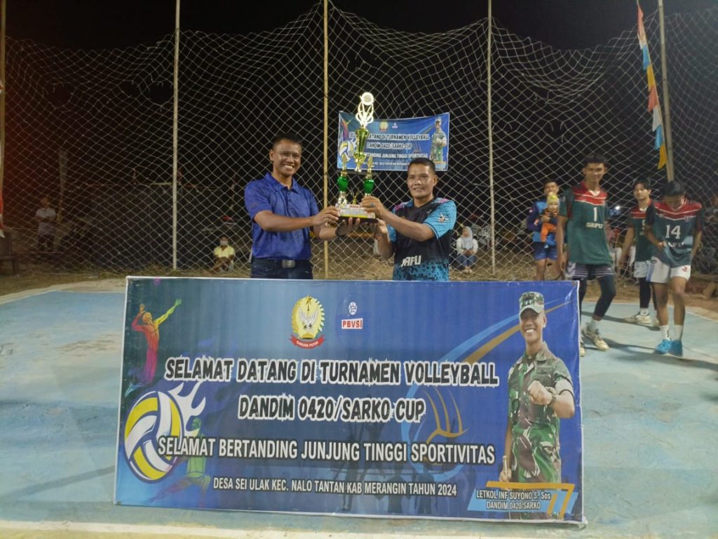 Yang Menghadiri Penutupan Turnamen Bola Volley Dandim Cup di Desa Sungai Ulak Dandim 0420 /Sarko LetkoL Inf Suyono S.sos, Kadus Sungai Ulak Bapak Sion,Pasi Ops Kodim 0420/Sarko Lettu Inf Hengki, Ketua Karang Taruna Sungai Ulak Bapak Yusuf dan Sekdes Bapak Kadat