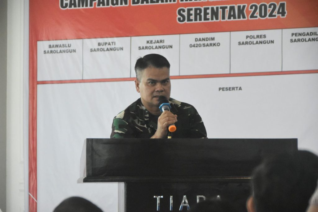 Jurnal1jambi.com, Rabu 11 September 2024 – Dalam rangka menyukseskan Pemilihan Kepala Daerah (Pilkada) yang damai, aman, dan berintegritas, Pabung 0420/Sarko Mayor Chk Dedy Afrizal, S.H., M.H., menghadiri acara Sosialisasi Pengawasan Partisipatif bersama Pers di Kabupaten Sarolangun. Acara yang digelar di Tiara Ballroom Nafiti Hotel tersebut dihadiri oleh berbagai pejabat penting dan unsur terkait, termasuk Pj Bupati Sarolangun Bachril Bakri, Kapolres Sarolangun yang diwakili oleh Kasat Intelkam AKP Sukman, S.H, serta perwakilan dari TNI, POLRI, Kejaksaan, Pengadilan Negeri, KPU, Bawaslu, dan media massa.