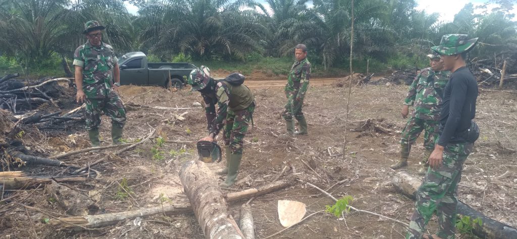 Hari ini anggota TMMD ke 122 Kodim 0420 Sarko, menyiapkan kayu untuk penahan gorong-gorong yang rencananya akan dipasang pada titik kedua tepatnya di KM 5,5.