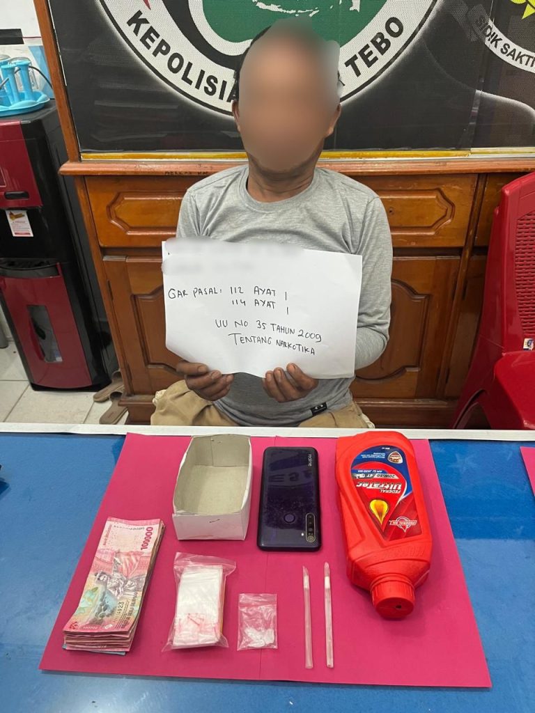 Kasat Resnarkoba Polres Tebo IPTU Jeki Noviardi S.H,M.H menjelaskan bahwa barang bukti yang ditemukan berasal dari penggeledahan di lokasi penangkapan. “Pelaku mengakui barang bukti tersebut adalah miliknya dan digunakan untuk diperjualbelikan,” ujarnya. Saat ini, pelaku dan barang bukti telah diamankan di Polres Tebo untuk proses hukum lebih lanjut.