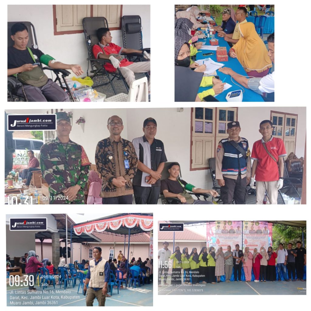 Jurnal1Jambi.Com.- Muaro Jambi. Kegiatan Bakti Sosial Donor Darah Pemerintahan Desa Mendalo Darat Dan Kecamatan, Danramil Serta Polsek Jambi Luar Kota Yang Di Laksanakan Di RT. 10 Dusun Kota Graha, Desa Mendalo Darat Kecamatan Jambi Luar, Kota Kabupaten Muaro Jambi.