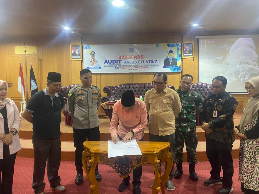 Jurnal1Jambi.Com,– Merangin, 15 November 2024 – Dalam rangka mendukung upaya penurunan angka stunting di Kabupaten Merangin, Komando Distrik Militer (Kodim) 0420/Sarko menggelar kegiatan diseminasi audit kasus stunting yang dilaksanakan di Aula Depati Payung Bappeda Kabupaten Merangin, pada hari Kamis, 15 November 2024. Kegiatan ini dihadiri oleh Penjabat (Pj) Bupati Merangin yang diwakili sekda, serta seluruh pejabat Forkopimda (Forum Koordinasi Pimpinan Daerah) Kabupaten Merangin.