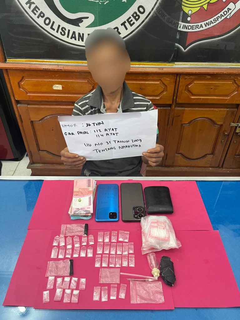Jurnal1Jambi.Com ,– POLRES TEBO Satresnarkoba Polres Tebo berhasil mengungkap kasus peredaran narkoba jenis sabu di wilayah Dusun Air Panas, Kelurahan Sungai Bengkal, Kecamatan Tebo Ilir, Kabupaten Tebo. Penangkapan dilakukan pada sekitar pukul 21.30 WIB, Jum’at(15/11/2024).
