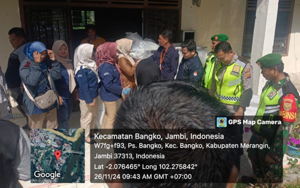 Jurnal1Jambi.Com,- Bangko – Peltu April Hadi, anggota Koramil 420-09/Bangko, turut serta dalam mengawal proses penerimaan logistik Pemilu Kepala Daerah (Pemilu Kada) di Kelurahan Pasar Bangko, Kecamatan Bangko, Kabupaten Merangin. Kegiatan ini berlangsung di Sekretariat Panitia Pemilihan Suara (PPS) Kelurahan Pasar Bangko pada hari ini, Senin, 26 November 2024.