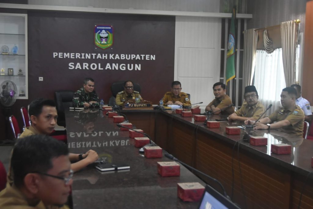Rapat yang dilaksanakan pada hari ini, Senin, 23 Desember 2024, dipimpin langsung oleh Tim Penanganan Inflasi Nasional, dengan dihadiri oleh Katim Satgas Pangan Mabes Polri dan Katim Satgas Pangan Mabes TNI. Kegiatan ini juga diikuti oleh Pj. Bupati Sarolangun Dr. Bahri, S.S.T.P., M.Si., yang memimpin rapat di tingkat daerah, serta sejumlah pejabat penting dari Kabupaten Sarolangun.