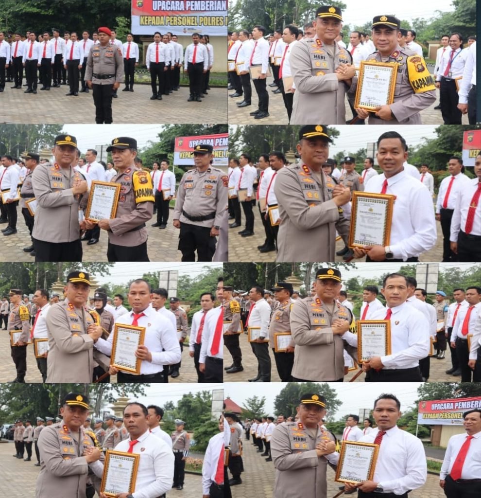Lanjutnya Kapolres Muaro Jambi AKBP Heri supriawan SIK MH mengatakan Upacara pemberian penghargaan yang kita laksanakan pada hari ini merupakan suatu kegiatan yang luar biasa terjadi di lingkungan Polri khususnya Polres Muaro Jambi sekaligus merupakan suatu bentuk penghargaan yang diberikan oleh institusi Polri dalam menunjang perjalanan karir saudara-saudara sekalian, momen ini merupakan suatu kebanggaan yang dirasakan begitu mendalam sebagai wujud penghargaan atas prestasi kerja dan jerih payah saudara-saudara yang telah dilakukan selama ini, hal tersebut tidak lepas dari tanggung jawab pribadi sebagai insan Bhayangkara sekaligus imbalan atas prestasi dan dedikasi serta pengabdian yang telah dilakukan pada akhir tahun 2024.