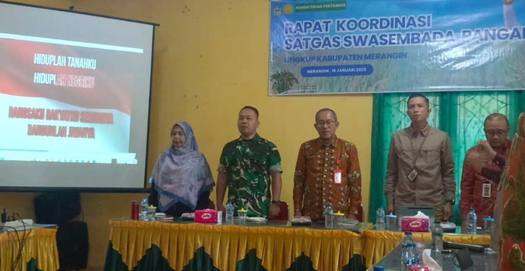 Jurnal1jambi.com, Kamis 16 Januari 2025 – Dalam upaya memperkuat koordinasi dan sinergi guna mewujudkan target swasembada pangan di Kabupaten Merangin, Dandim 0420/Sarko yang diwakili oleh Pasiter Kodim 0420/Sarko, Lettu Arh Andri Yunerlim, turut hadir dalam kegiatan yang diselenggarakan di Aula Dinas Tanaman Pangan dan Holtikultura Kabupaten Merangin.