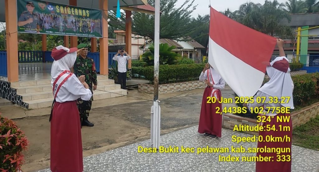 Jurnal1Jambi.Com,- Sarolangun, Senin 20/1/2025 – Serka Sunardi, Babinsa Koramil 420-02/Limun, Kodim 0420/Sarko, bertindak sebagai Inspektur Upacara (Irup) pada pelaksanaan upacara bendera di SDN 092 Desa Pematang Kolim, Kecamatan Pelawan, Kabupaten Sarolangun. Upacara ini digelar dalam rangka mendukung kegiatan Sriwijaya Glorakan Nasionalisme (SRIGERNAS), yang bertujuan untuk menumbuhkan semangat cinta tanah air dan nasionalisme di kalangan generasi muda.