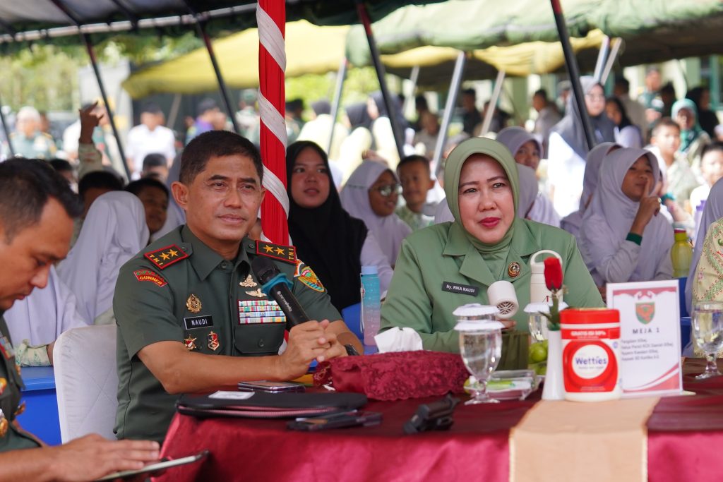 Jurnal1Jambi.Com,- Pangdam II/Sriwijaya Mayjen TNI M. Naudi Nurdika bersama Ketua Persit Kartika Chandra Kirana (KCK) Daerah II/Sriwijaya Ny. Rika Naudi Nurdika melaksanakan kegiatan Dapur Masuk Sekolah Makan Siang Bergizi yang diselenggarakan di SD Kartika II-2 Jl. Jend. Basuki Rahmat RT. 10 Kel. 20 Ilir Kec. Kemuning Kota Palembang, Kamis (23/01/2025).