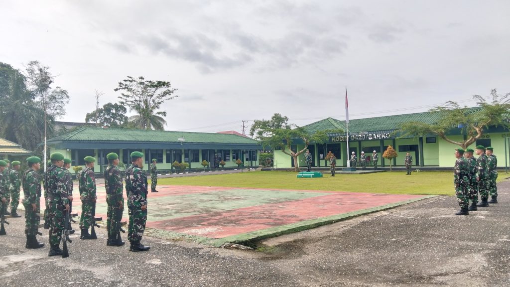 Jurnal1Jambi,Com,- Merangin, Senin 21/4/2025 – Seluruh personel Kodim 0420/Sarko melaksanakan upacara mingguan yang berlangsung khidmat di lapangan Makodim. Kegiatan rutin yang digelar setiap Senin pagi ini dipimpin langsung oleh Danramil 420-09/Bangko, Mayor Inf Darminto, S.I.P., yang bertindak sebagai inspektur upacara (Irup).