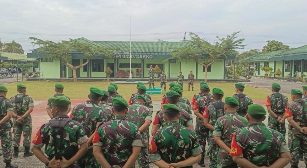Jurnal1Jambi.Com,- Merangin, Kodim 0420/Sarko menggelar Apel Luar Biasa pada Kamis pagi (29/5) yang dilanjutkan dengan pengarahan langsung dari Komandan Kodim 0420/Sarko, Letkol Inf Suyono, S.Sos. Kegiatan ini dilaksanakan pada pukul 07.30 WIB bertempat di halaman Makodim 0420/Sarko, Kabupaten Merangin.