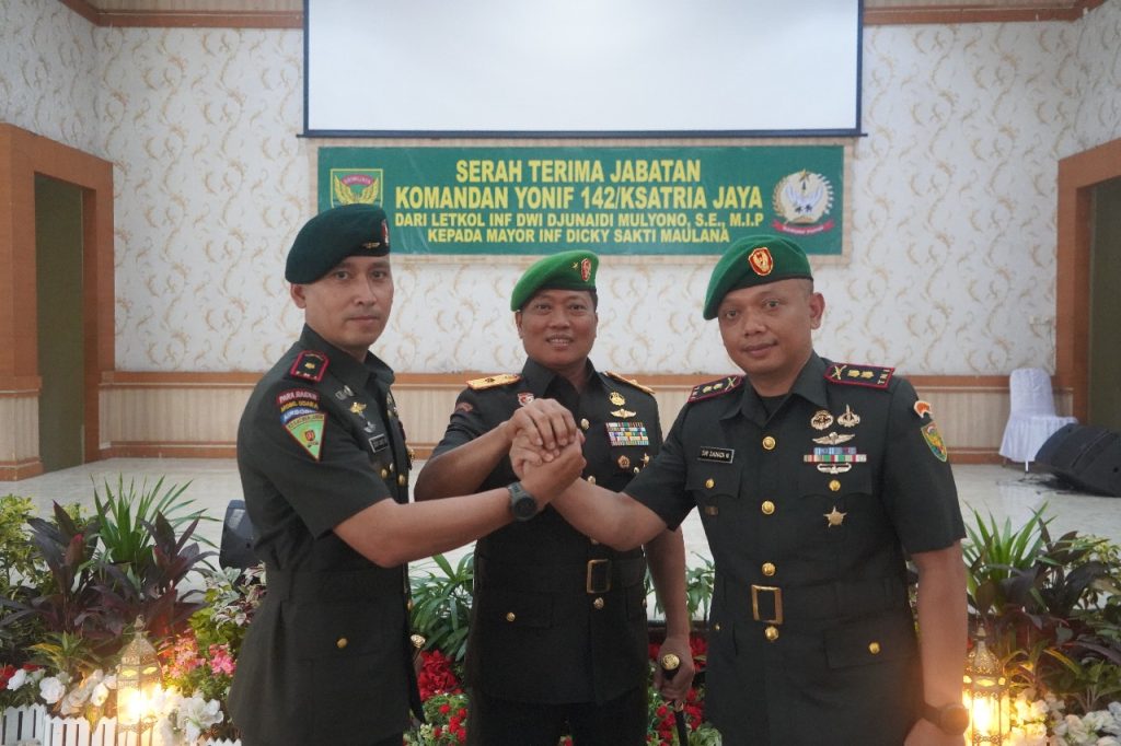 Dalam Acara tersebut, jabatan Danyonif 142/KJ resmi diserahterimakan dari Letkol Inf Dwi Djunaedi Mulyono, S.E kepada Letkol Inf Dicky Sakti Maulana. Sertijab ini merupakan bagian dari dinamika organisasi TNI AD dalam rangka penyegaran dan pengembangan karier prajurit serta meningkatkan profesionalisme satuan.