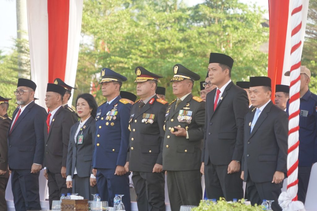 Pukul 08.00 WIB, upacara dimulai. Langkah seragam menghiasi tanah Telanaipura. Para Kasi Korem 042/Gapu, para Komandan, Kepala Balak Aju, serta unsur TNI-Polri dan berbagai instansi pemerintahan hadir dalam tampilan formal—PDU I bagi TNI-Polri, dan busana nasional bagi peserta perempuan. Kekhidmatan menjadi narasi yang nyata di bawah langit Jambi pagi itu.