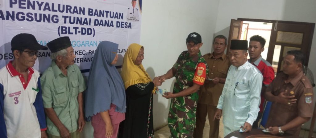 Jurnal1Jambi.com,- Desa Tambang Emas, 3 Juli 2025 — Rabu kemarin, suasana aula Desa Tambang Emas, Kecamatan Pamenang Selatan, Kabupaten Merangin, tampak semarak namun tertib. Sebanyak 12 keluarga penerima manfaat menerima Bantuan Langsung Tunai Dana Desa (BLT-DD) tahap II untuk bulan April, Mei, dan Juni 2025, masing-masing senilai Rp900.000. Kehadiran Babinsa, Koptu Sentot Sukriyono, menjadi sorotan penting dalam proses ini, menegaskan bahwa distribusi bantuan publik tak boleh lepas dari pengawasan.