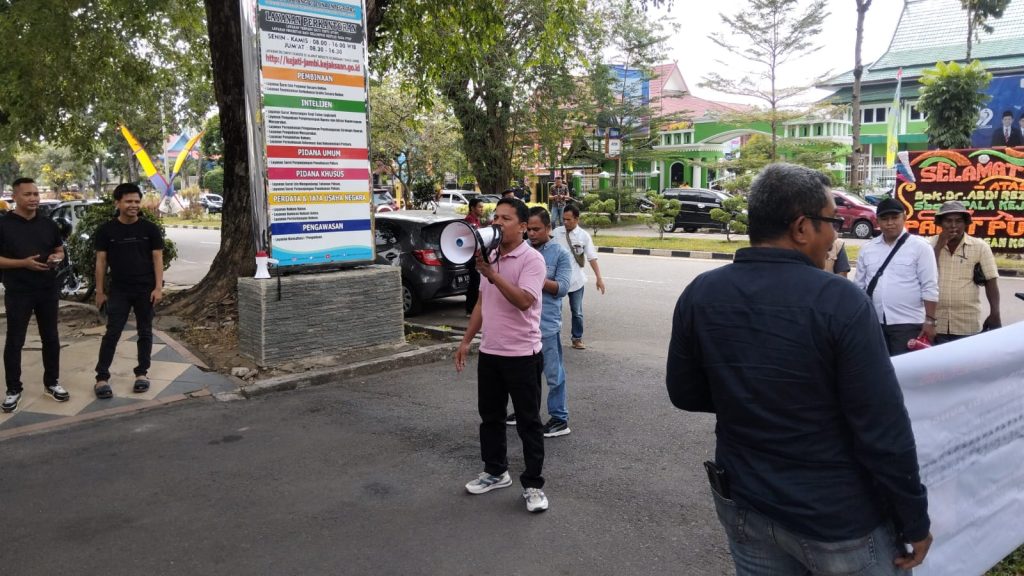 Jurnal1Jambi.com,- JAMBI — Di tengah sorotan publik terhadap lemahnya pengawasan proyek infrastruktur, Aliansi Masyarakat untuk Keadilan (AMUK) menggelar aksi damai pada Rabu (30/07/2025) di depan Kantor Kejaksaan Tinggi (Kejati) Jambi. Aksi ini merupakan bentuk desakan serius terhadap dugaan korupsi pada dua proyek jalan strategis di Kabupaten Bungo yang bersumber dari APBD Perubahan 2024. Bagi AMUK, masalah ini bukan hanya tentang jalan yang tidak selesai, melainkan tentang runtuhnya kepercayaan masyarakat terhadap hukum dan keadilan.