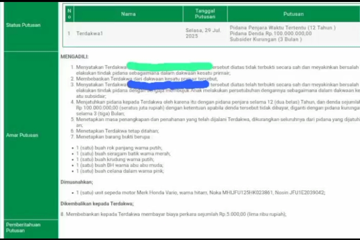 Jurnal1Jambi.com,- DEMAK – Persidangan panjang perkara pencabulan terhadap siswi SMP akhirnya mencapai titik akhir. Pengadilan Negeri Kabupaten Demak, Selasa (29/07/2025), menjatuhkan vonis 12 tahun penjara dan denda Rp100 juta kepada terdakwa, seorang oknum guru SMP yang terbukti melakukan tindakan keji terhadap muridnya yang masih di bawah umur. Putusan ini menjadi sinyal tegas: hukum tidak boleh tunduk pada status sosial, jabatan, atau harta.