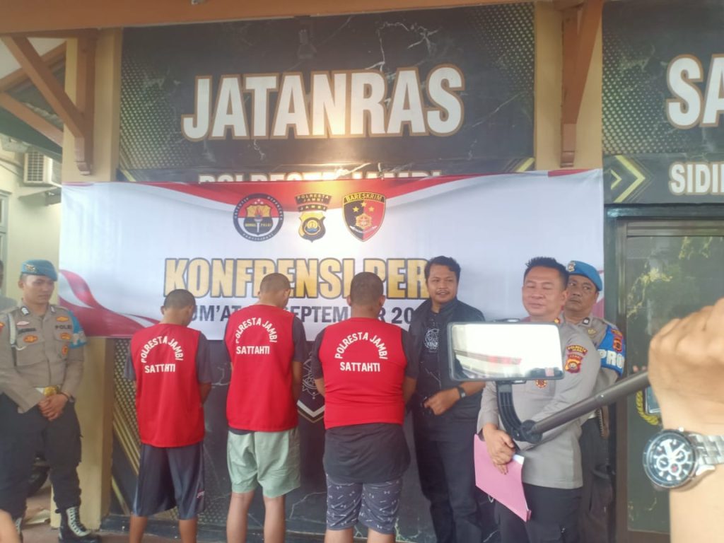 Menindaklanjuti laporan tersebut, tim Polresta Jambi bergerak cepat. Pada 9–10 September 2025, aparat berhasil mengamankan tiga orang pelaku berinisial JA, WS, dan DA di kediaman masing-masing.