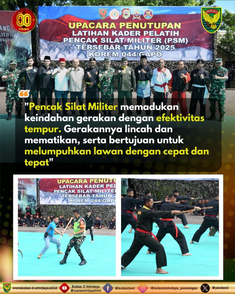 Jurnal1jambi.com,- Sebanyak 178 prajurit Kodam II/Sriwijaya kini resmi menyandang Sabuk Merah Pencak Silat Militer (PSM), setelah menyelesaikan Latihan Kader Pelatih PSM yang berlangsung selama 90 hari.