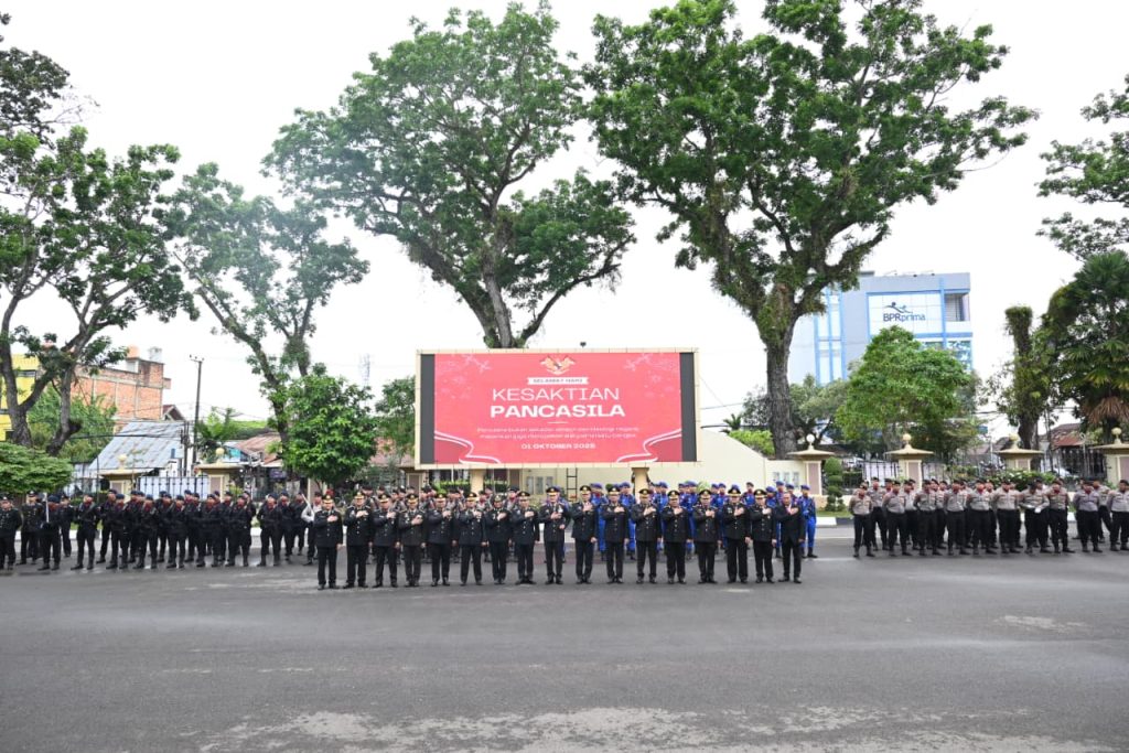 Jurnal1jambi.com,- Jambi, 01/10/2025 – Polda Jambi menggelar Upacara Peringatan Hari Kesaktian Pancasila Tahun 2025 di Lapangan Apel Mapolda Jambi, Rabu (01/10/2025). Upacara berlangsung khidmat dengan Inspektur Upacara dipimpin langsung oleh Kapolda Jambi, Irjen Pol Krisno H. Siregar.