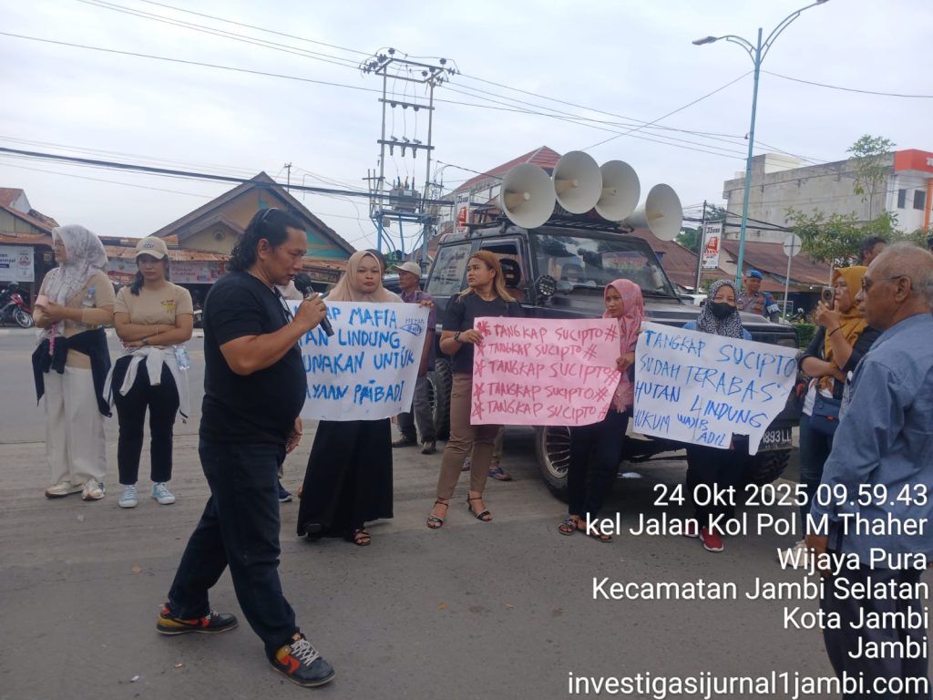 Jurnal1jambi.com,— JAMBI — Dewan Pimpinan Pusat (DPP) Organisasi Masyarakat HAM Indonesia melakukan aksi unjuk rasa yang berlangsung pada Jumat, (24/10/2025), dengan titik kumpul di Taman Makam Pahlawan dan tujuan unjuk rasa ke Polda Jambi, Dinas Kehutanan, serta DPRD Provinsi Jambi.