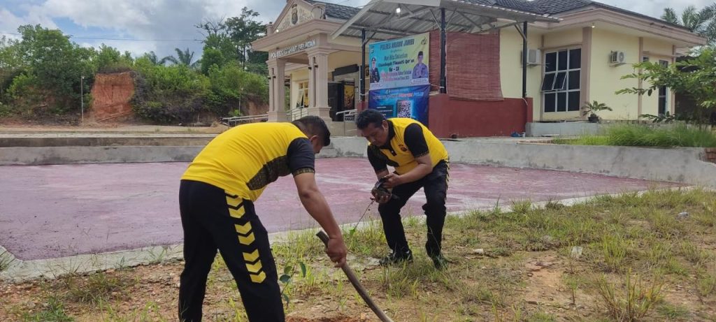 Jurnal1jambi.com,— MUARO JAMBI — Dalam rangka memperingati Hari Pohon Sedunia 2025, Polsek Bahar Selatan, Polres Muaro Jambi, menggelar kegiatan penanaman pohon serentak di Kecamatan Bahar Selatan, Kabupaten Muaro Jambi, Jumat (21/11/2025) pagi. Kegiatan ini dimulai pukul 09.30 WIB dan menjadi momentum kolaborasi antara Polri, guru, serta para pelajar.