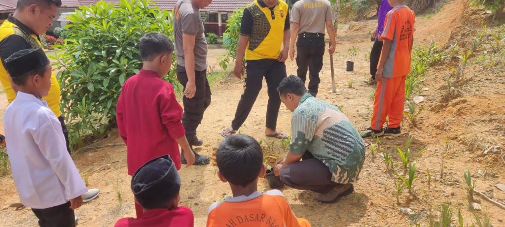 Selain menanam pohon, personel Polsek juga memberikan edukasi lingkungan kepada para pelajar. Mereka diajak memahami pentingnya menjaga kebersihan, tidak membuang sampah sembarangan, serta menghindari pembakaran hutan dan lahan yang dapat merusak ekosistem.